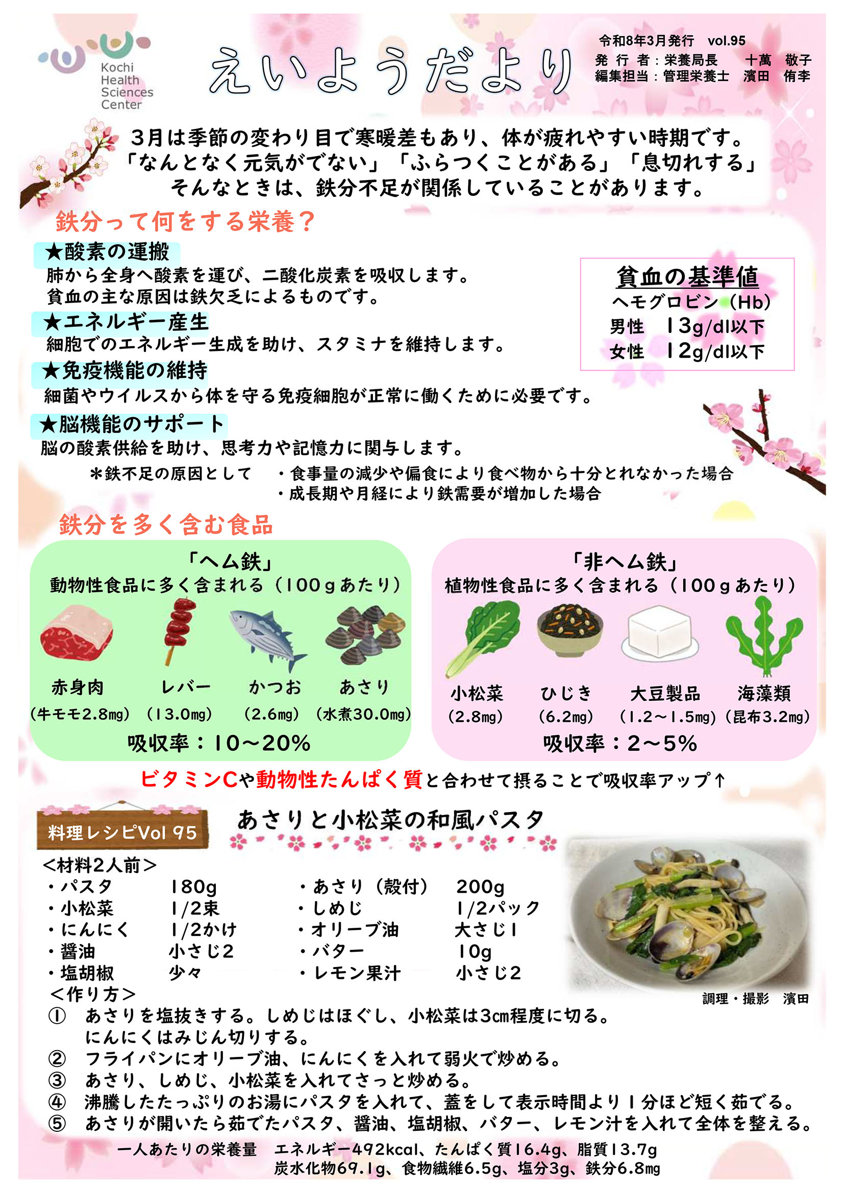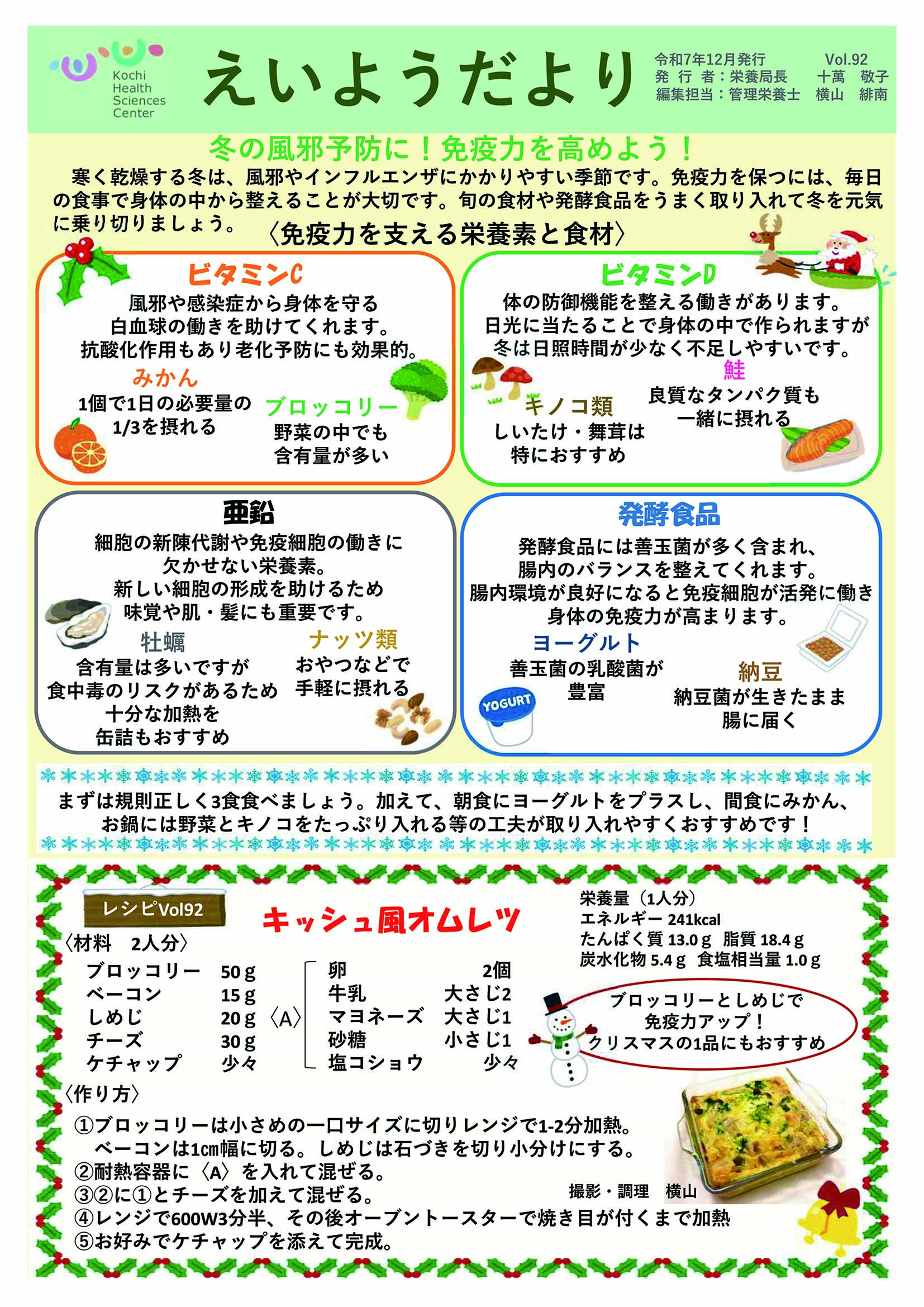 栄養局では、入院フロアの掲示板へ、毎月栄養関連の情報発信として「えいようだより」を発行しています。旬の食材について、また栄養学的な情報をお知らせするとともに管理栄養士によるレシピも紹介しています。