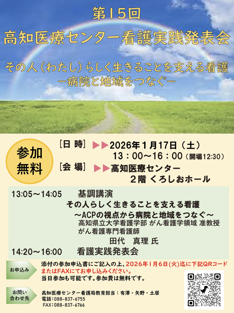 下記日程にて 15回 高知医療センター看護実践発表会を開催いたします
