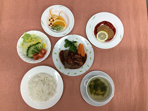 入院生活を少しでも快適に過ごしていただくため、四季折々のメニューを取り入れ 美味しい病院食の提供に努めております。また、一般食および一部の治療食をお召し上がりの患者さんに限りますが、お好みのお食事を選んでいただくサービスを行っています。