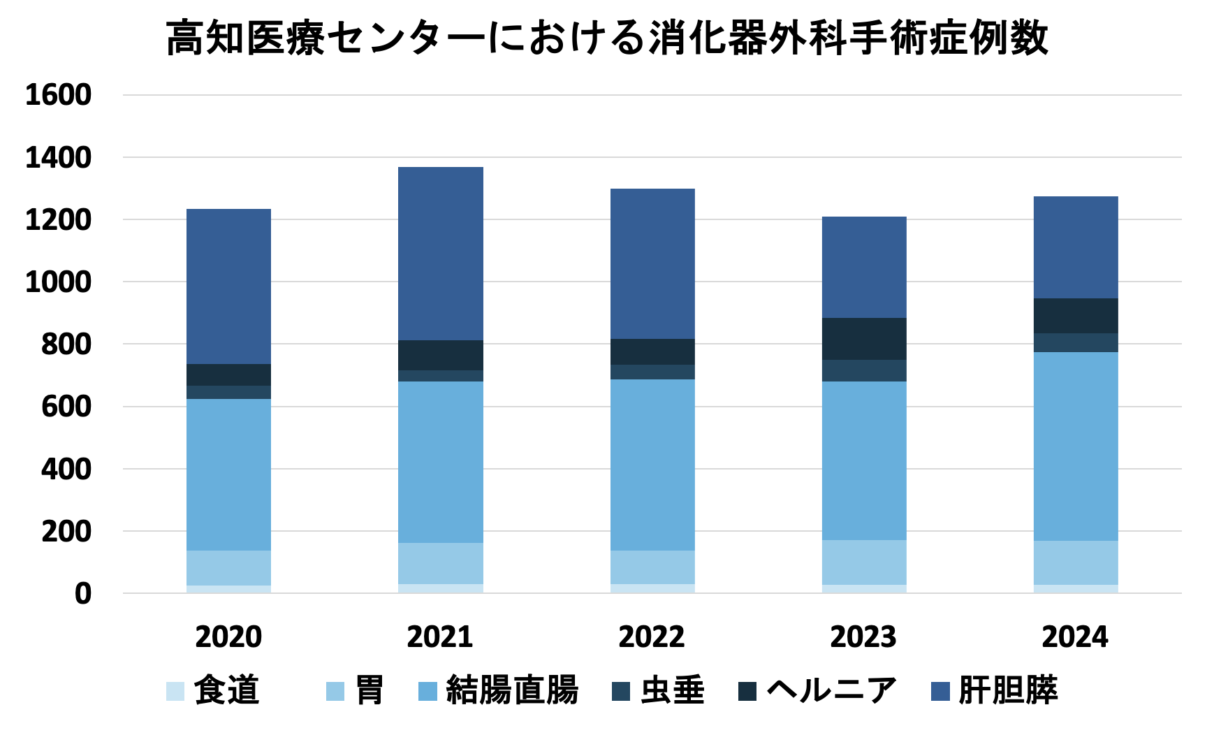 高知医療センター消化器外科・一般外科は,食道・胃・小腸・大腸・肝胆膵といった消化器疾患全般に幅広く対応し、悪性・良性を問わず外科的治療を必要とする多様な症例に対して、高度で安全な医療を提供しています。臓器別に上部消化管・下部消化管・肝胆膵・ヘルニアのチーム体制をとり、各分野の専門的知識と高度な技術をもつスペシャリストが連携し、患者さんにとって最善の治療を追求しています。