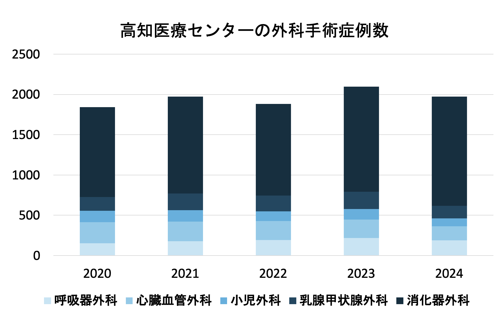 高知医療センターは高知県民の健康を守るために日々努力しています。とくに消化器がん治療においては、高知県で最多の手術症例数を誇り高知県民に安全で確実な外科医療を提供しています。昨今、消化器外科医が激減しており、消化器外科医は2040年ころには現在の半数になると推測されています。高知県においても若手消化器外科医の育成は急務となっているのが現状です。