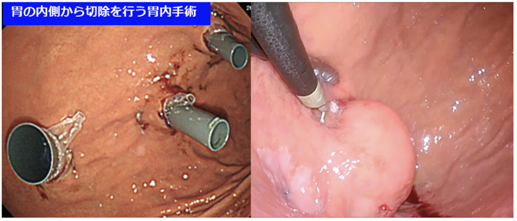 胃GISTに対しては、腹腔鏡手術や胃内手術(胃の内腔に手術鉗子を挿入して、胃の内側から病変を切除する方法)といった低侵襲手術で切除することを基本としています。巨大なGISTに対する手術経験も豊富にあり、高難度症例に対しても安全に手術を行っています。
